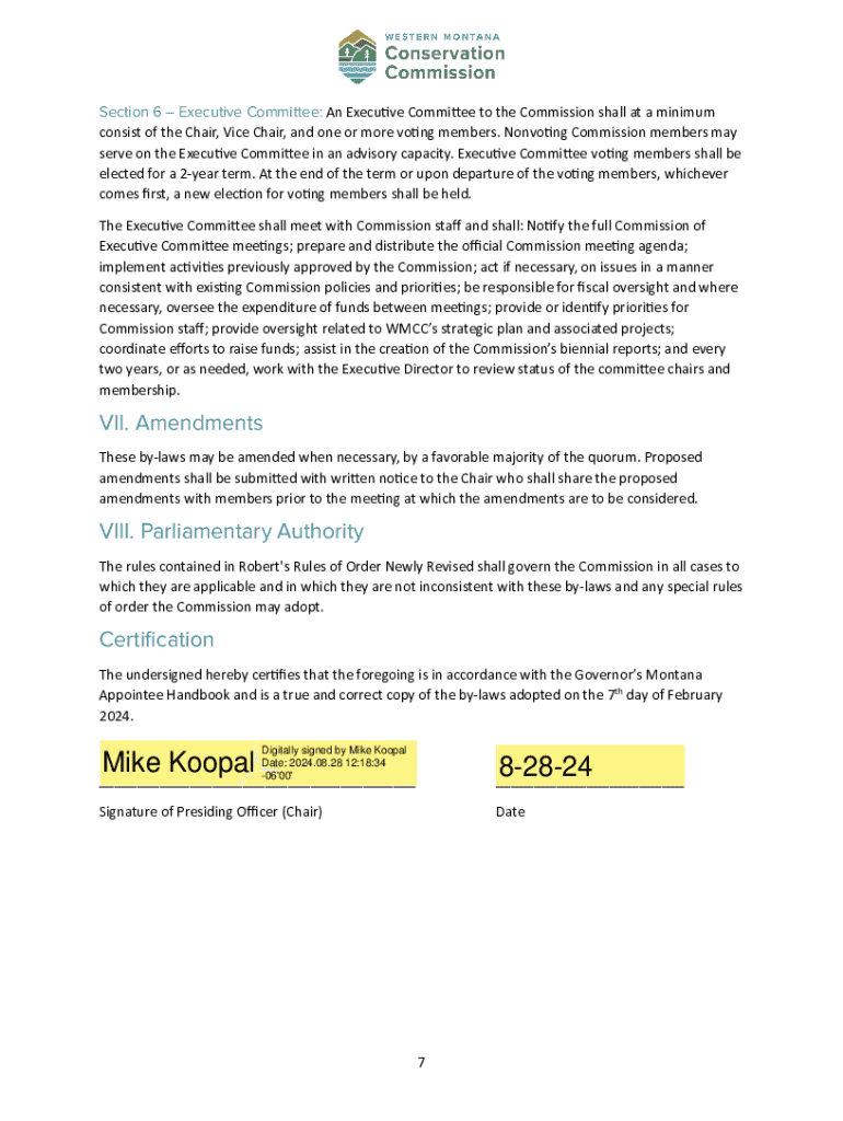 This document outlines the structure, authority, duties, and operational procedures of the Western Montana Conservation Commission, including its purpose to protect aquatic resources, membership details,