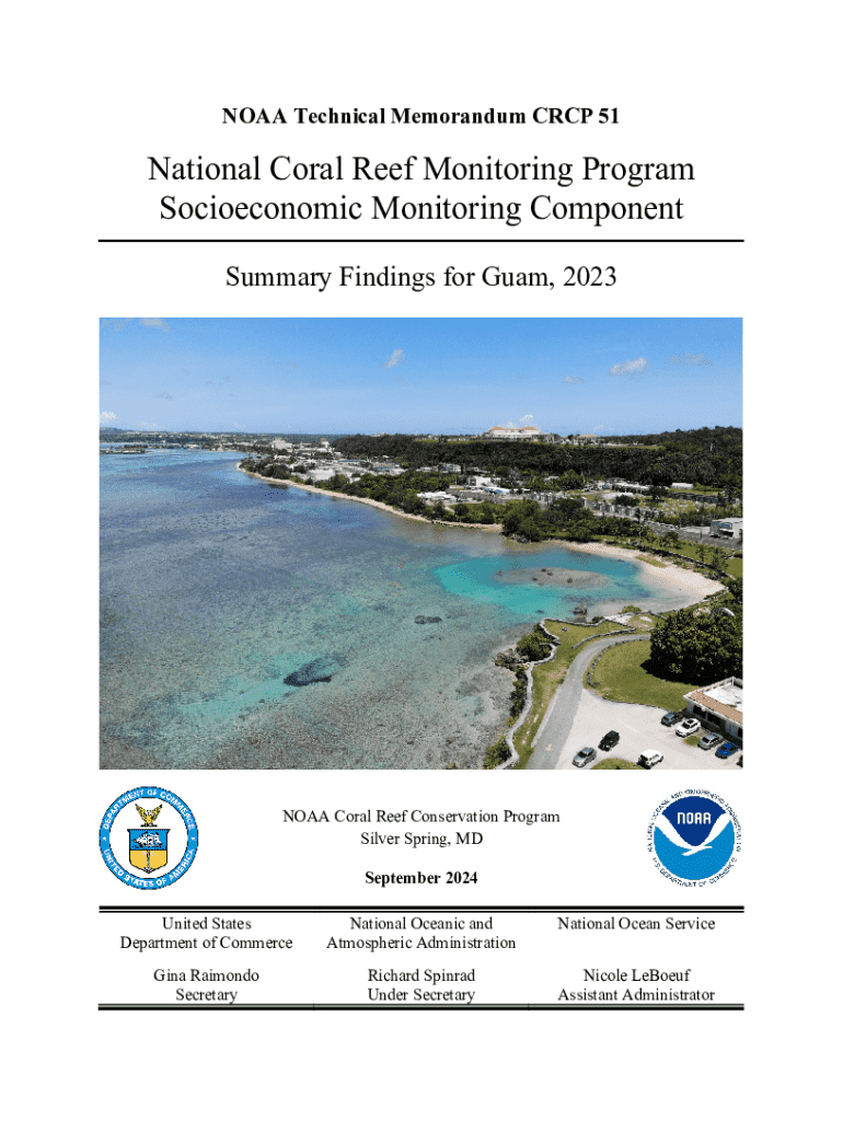 Este memorando técnico de NOAA presenta los hallazgos del componente de monitoreo socioeconómico del Programa Nacional de Monitoreo de Arrecifes de Coral (NCRMP) para Guam, recopilados durante el