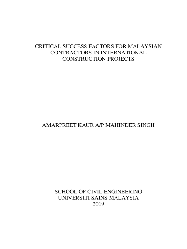 Get the free Critical Success Factors for Malaysian Contractors in International Construction Pro...