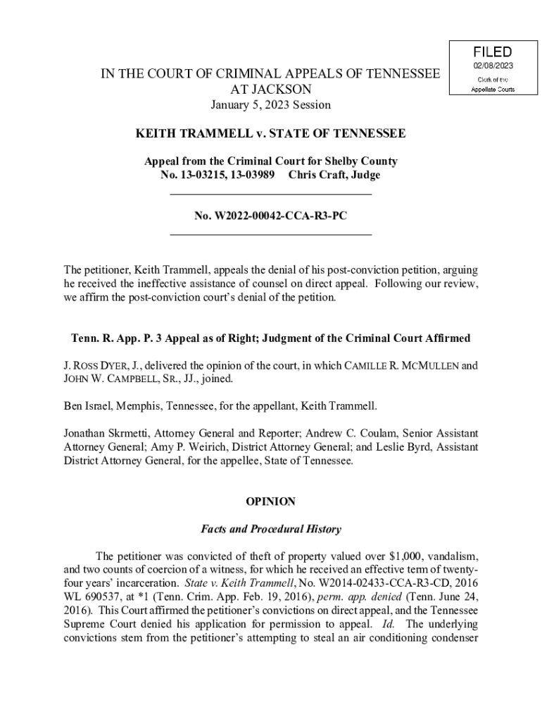 IN THE COURT OF CRIMINAL APPEALS OF TENNESSEE AT JACKSON02/08/2023January 5, 2023 Session KEITH TRAMMELL v. STATE OF TENNESSEE Appeal from the Criminal Court for Shelby County No. 1303215, 1303989