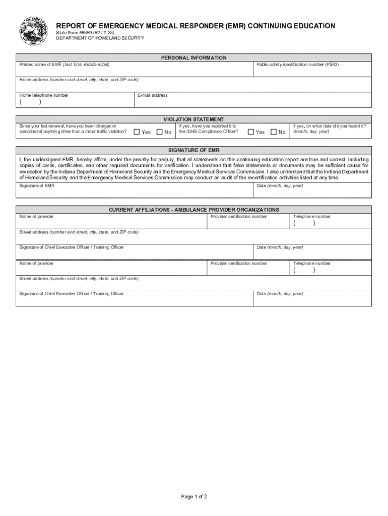 This document provides instructions and requirements for renewing certification as a first responder in Indiana, including the necessary continuing education hours and the associated reporting procedures.