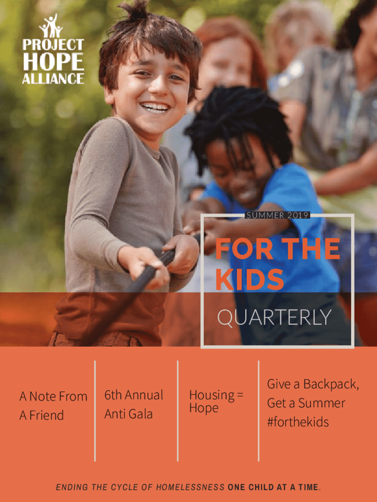 SUMMER 2019FOR THE KIDS QUARTERLYA Note From A Friend6th Annual Anti GalaHousing HopeGive a Backpack, Get a Summer #forthekidsE N D IN G THE CY CLE O F HOMELESSNESS ONE CHILD AT A TIME.A Note From