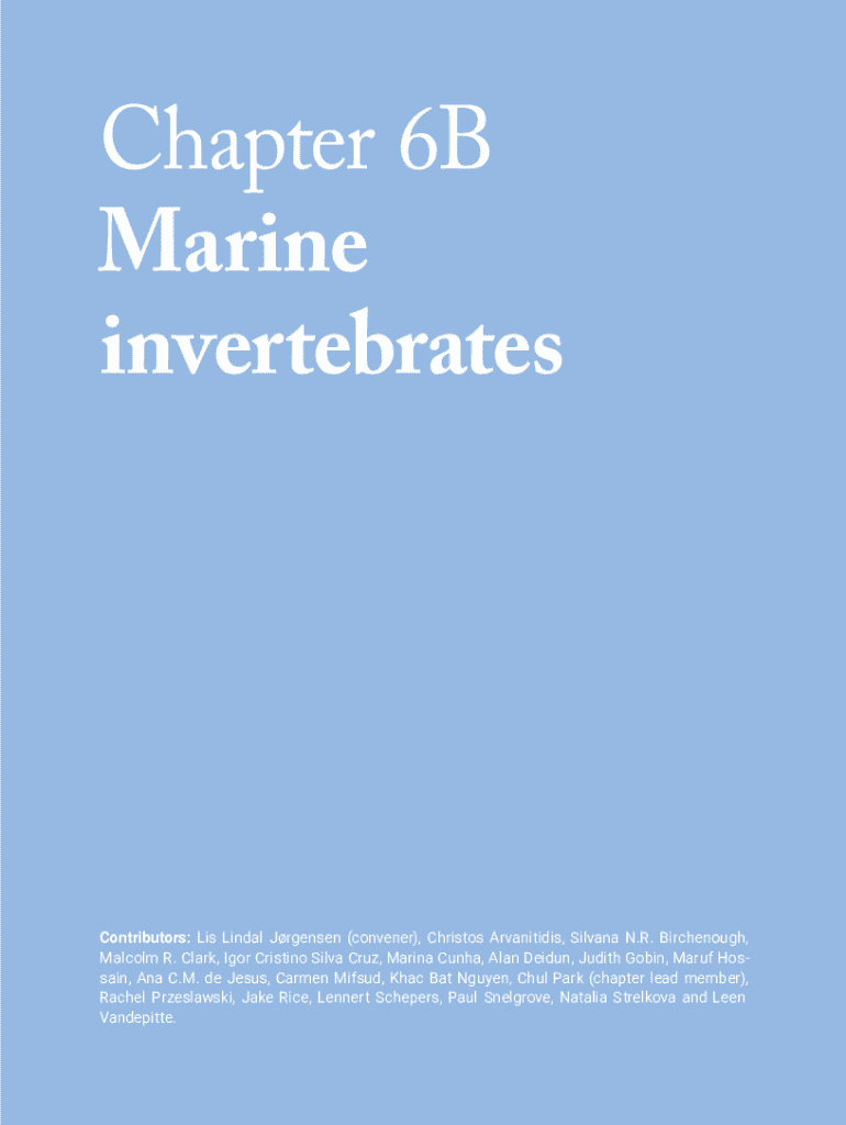 Chapter 6B Marine invertebratesContributors: Lis Lindal Jrgensen (convener), Christos Arvanitidis, Silvana N.R. Birchenough, Malcolm R. Clark, Igor Cristino Silva Cruz, Marina Cunha, Alan Deidun,