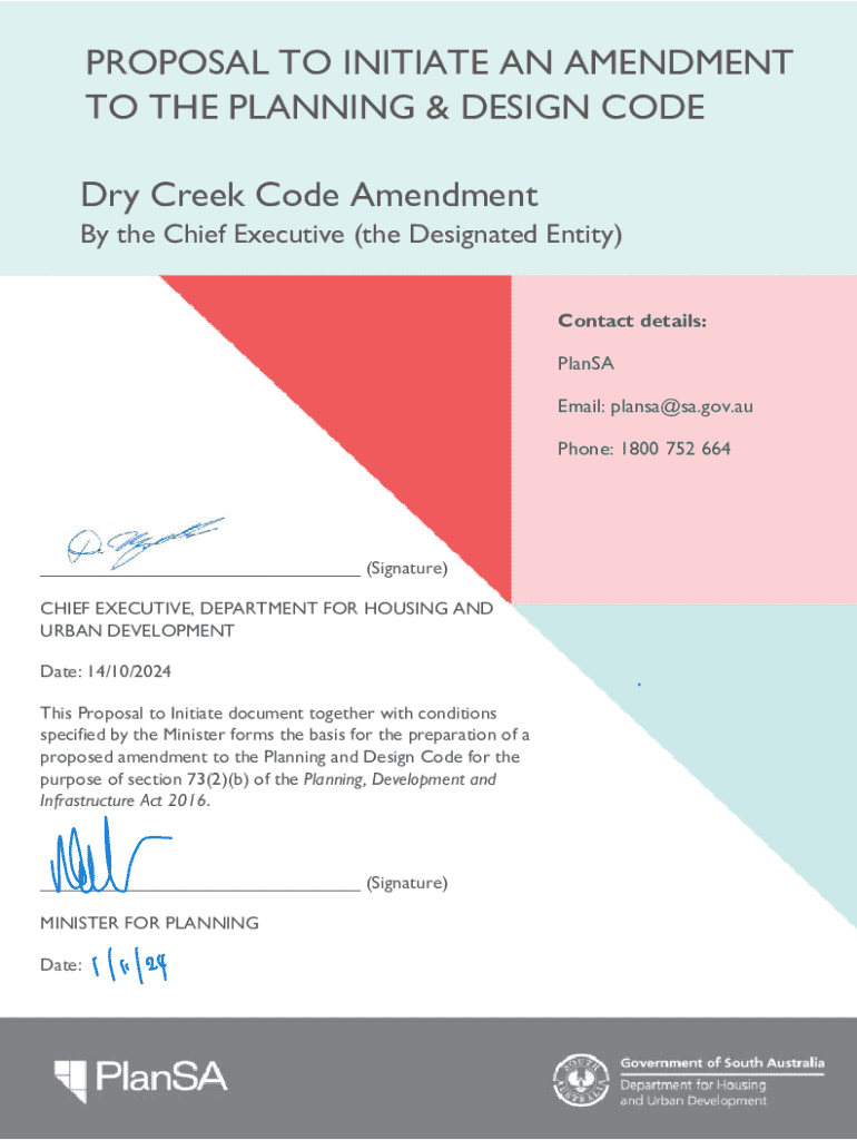 Get the free Proposal to Initiate an Amendment to the Planning & Design Code