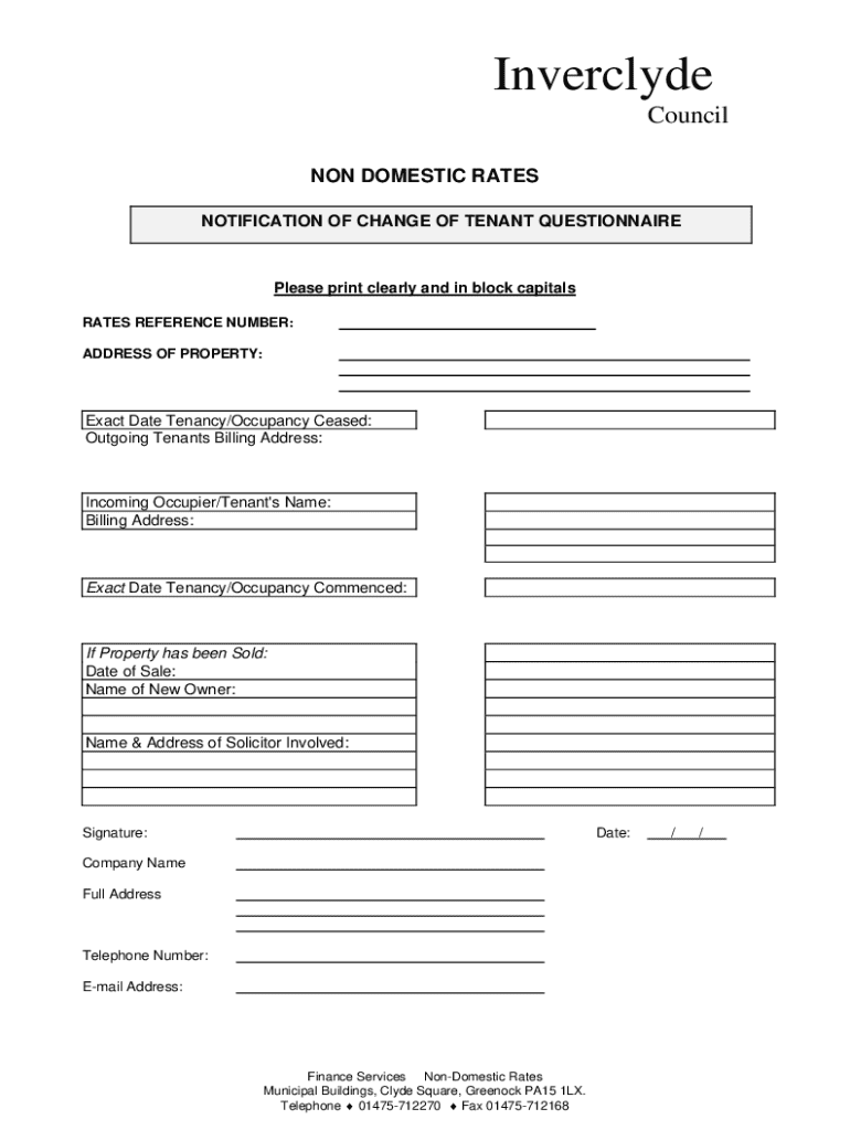 Get the free Non Domestic Rates Notification of Change of Tenant Questionnaire