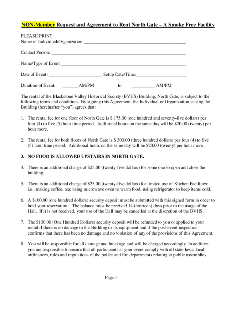 Get the Non-member Request and Agreement to Rent North Gate – a Smoke Free Facility