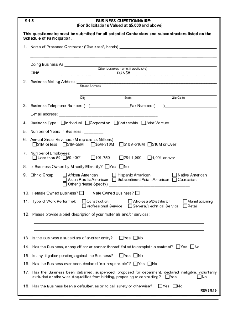 Typically, businesses that are required to report certain financial, operational, or regulatory information to government agencies or other stakeholders are required to fill out a business questionnaire.