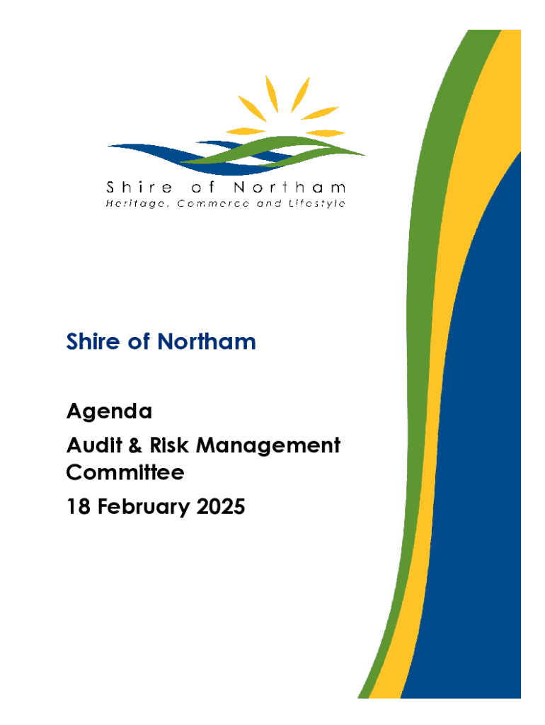 Este documento proporciona la agenda para la reunión del Comité de Auditoría y Gestión de Riesgos del Shire de Northam, programada para el 18 de febrero de 2025. Incluye la declaración de apertura,