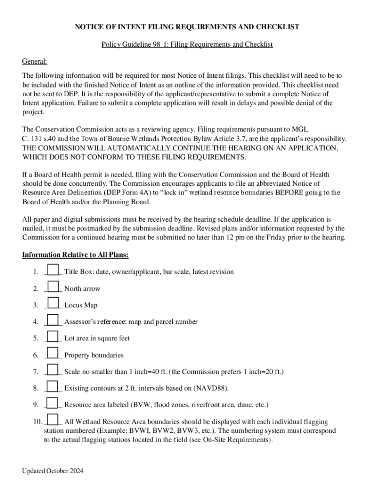 Get the free Notice of Intent Filing Requirements and Checklist