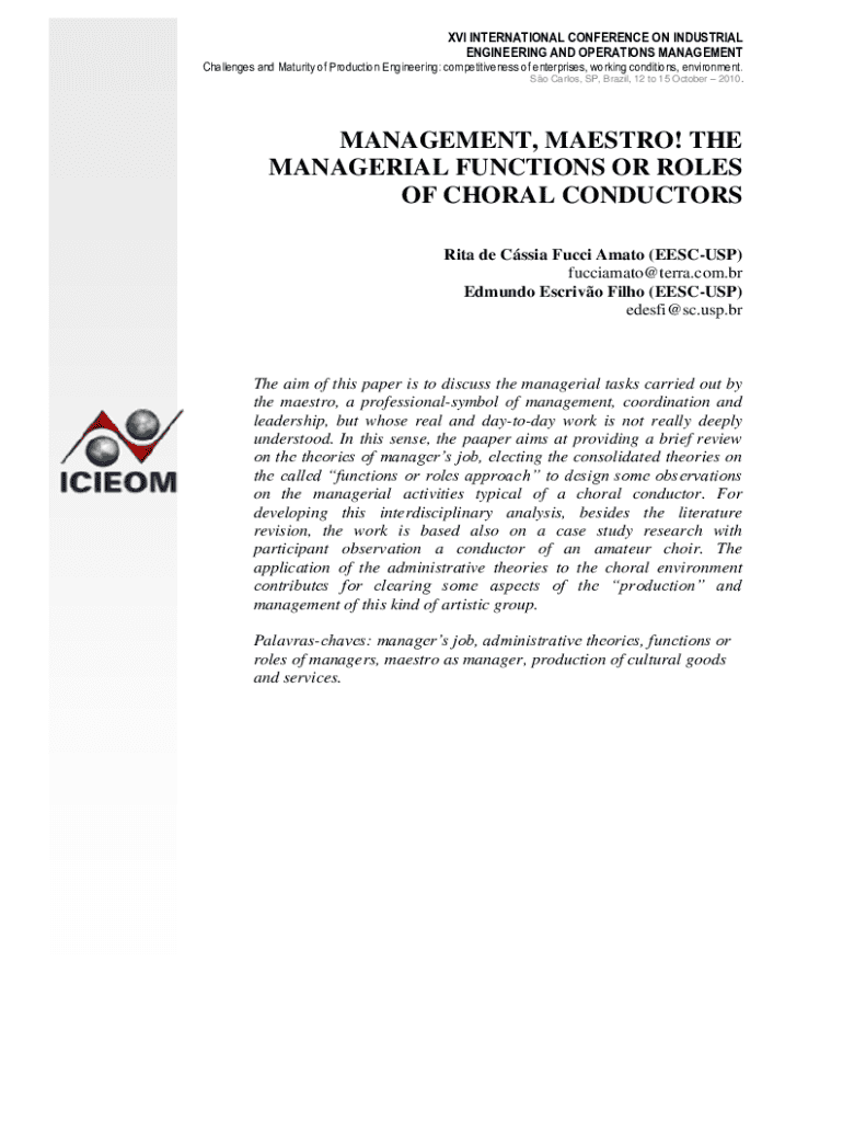 Get the free XVI INTERNATIONAL CONFERENCE ON INDUSTRIAL - abepro org