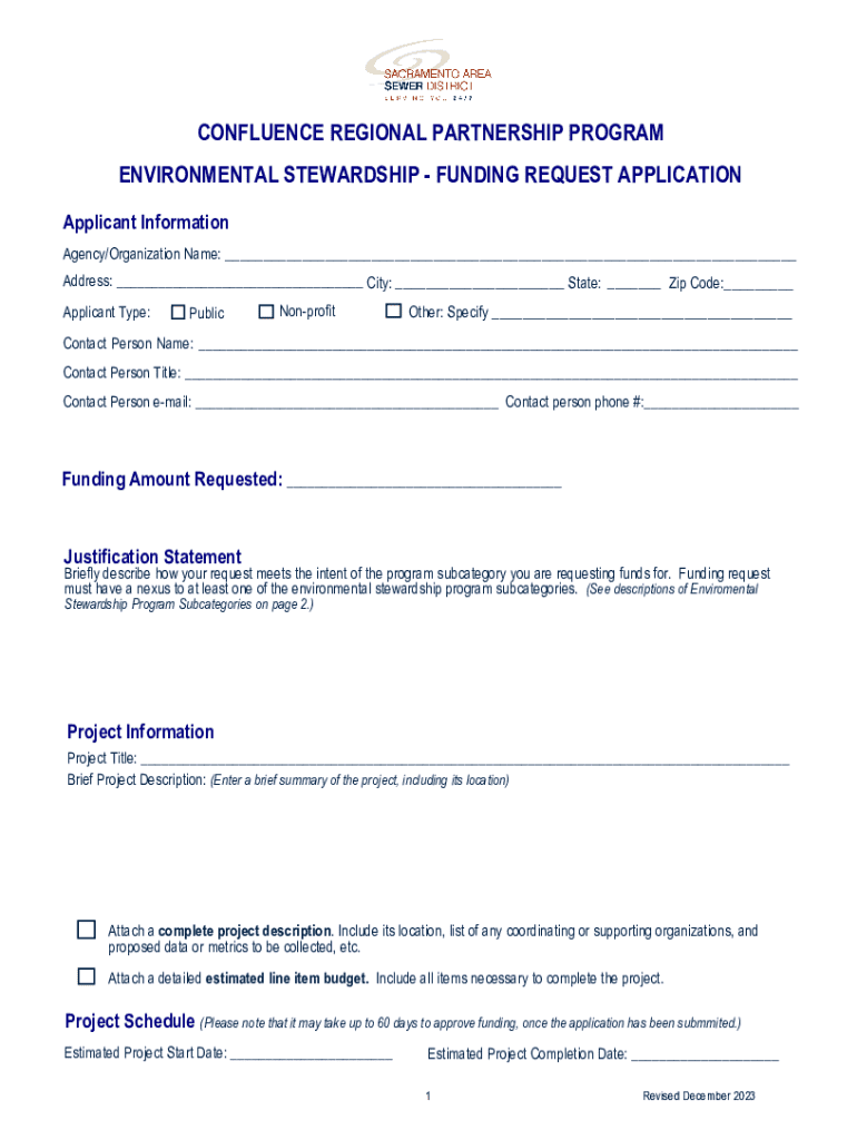 Environmental Stewardship - Funding is not the form you're looking for?Search for another form here.
