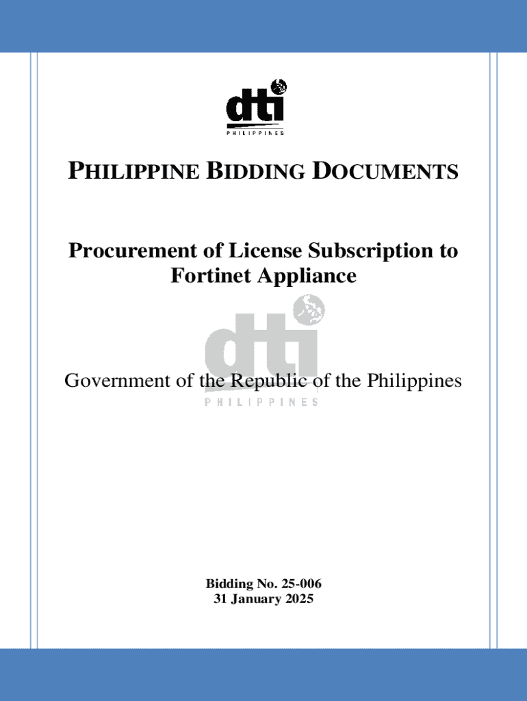 PHILIPPINE BIDDING DOCUMENTS Procurement of License Subscription to Fortinet ApplianceGovernment of the Republic of the PhilippinesBidding No. 25006 31 January 20250Table of Contents Glossary of Acronyms,
