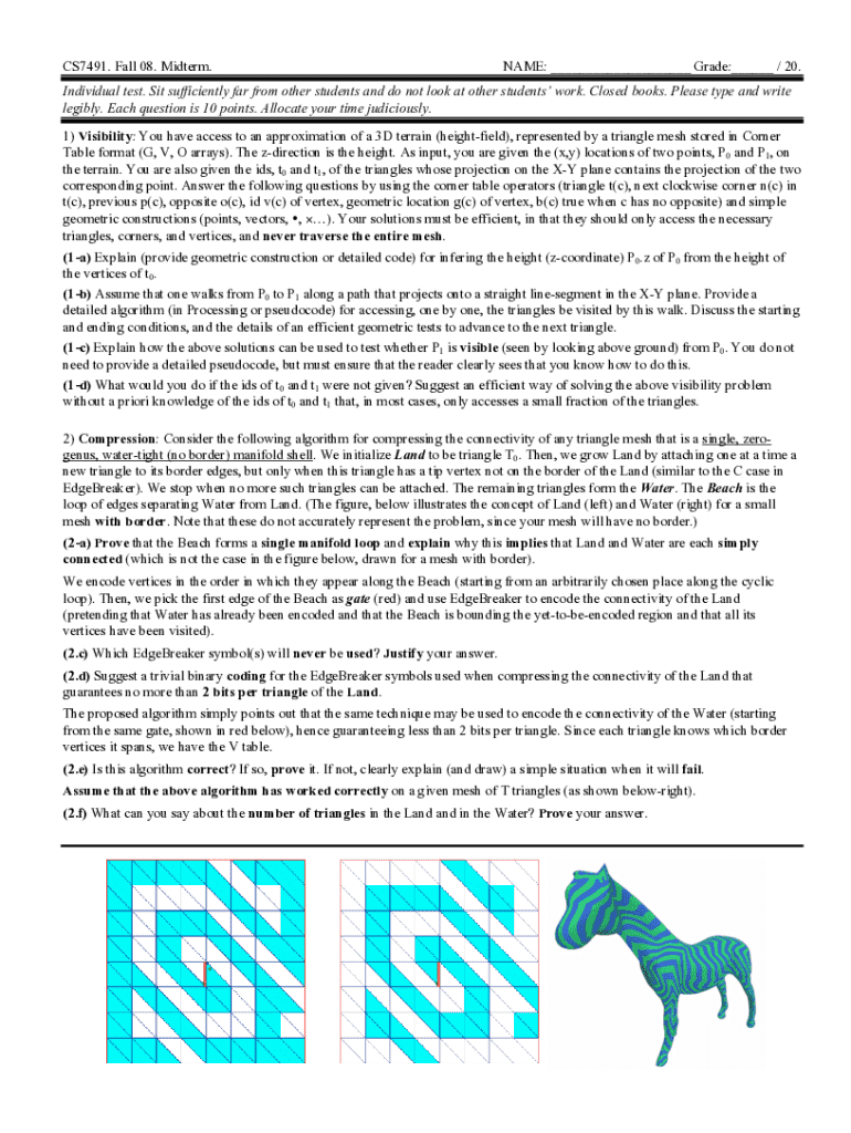 CS7491. Fall 08. Midterm.NAME: ___ Grade:___ / 20.Individual test. Sit sufficiently far from other students and do not look at other students work. Closed books. Please type and write legibly. Each