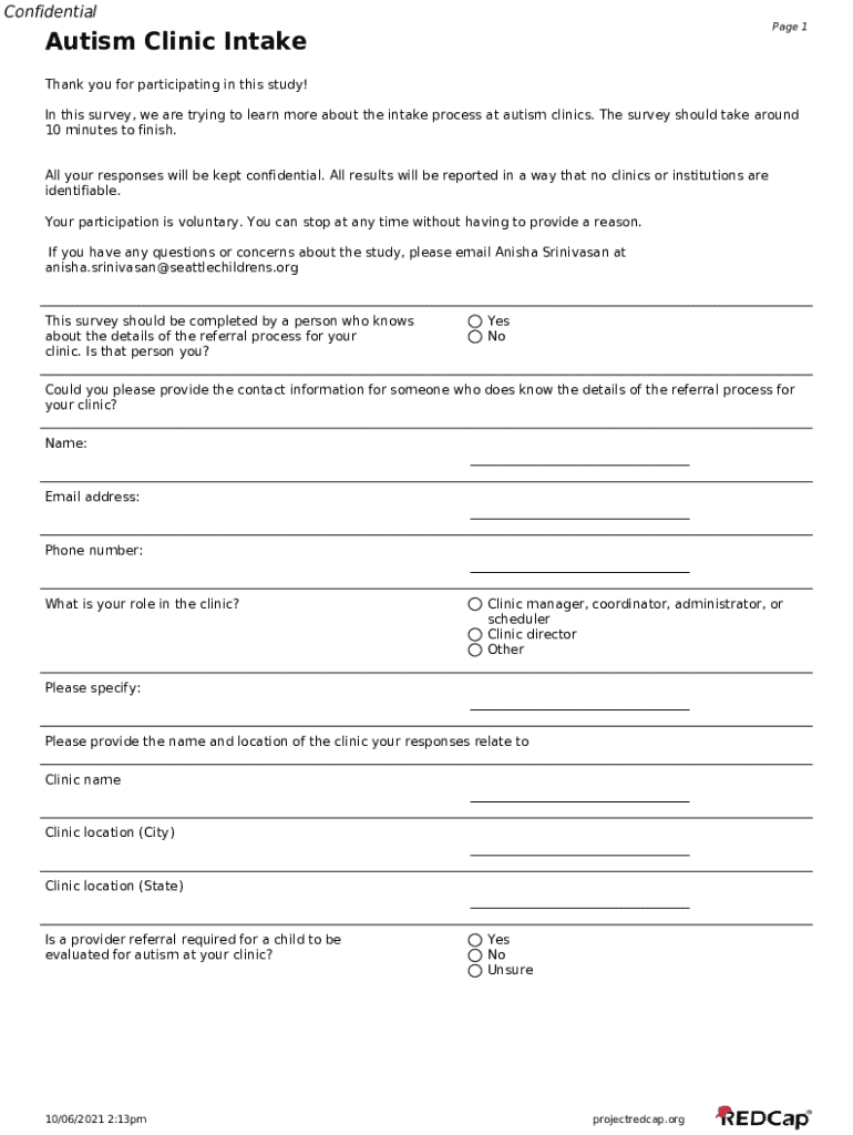 Autism Clinic Intake is not the form you're looking for?Search for another form here.