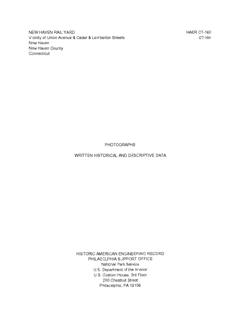 NEW HAVEN RAIL YARD Vicinity of Union Avenue & Cedar & Lamberton Streets New Haven New Haven County ConnecticutPHOTOGRAPHS WRITTEN HISTORICAL AND DESCRIPTIVE DATAHISTORIC AMERICAN ENGINEERING RECORD