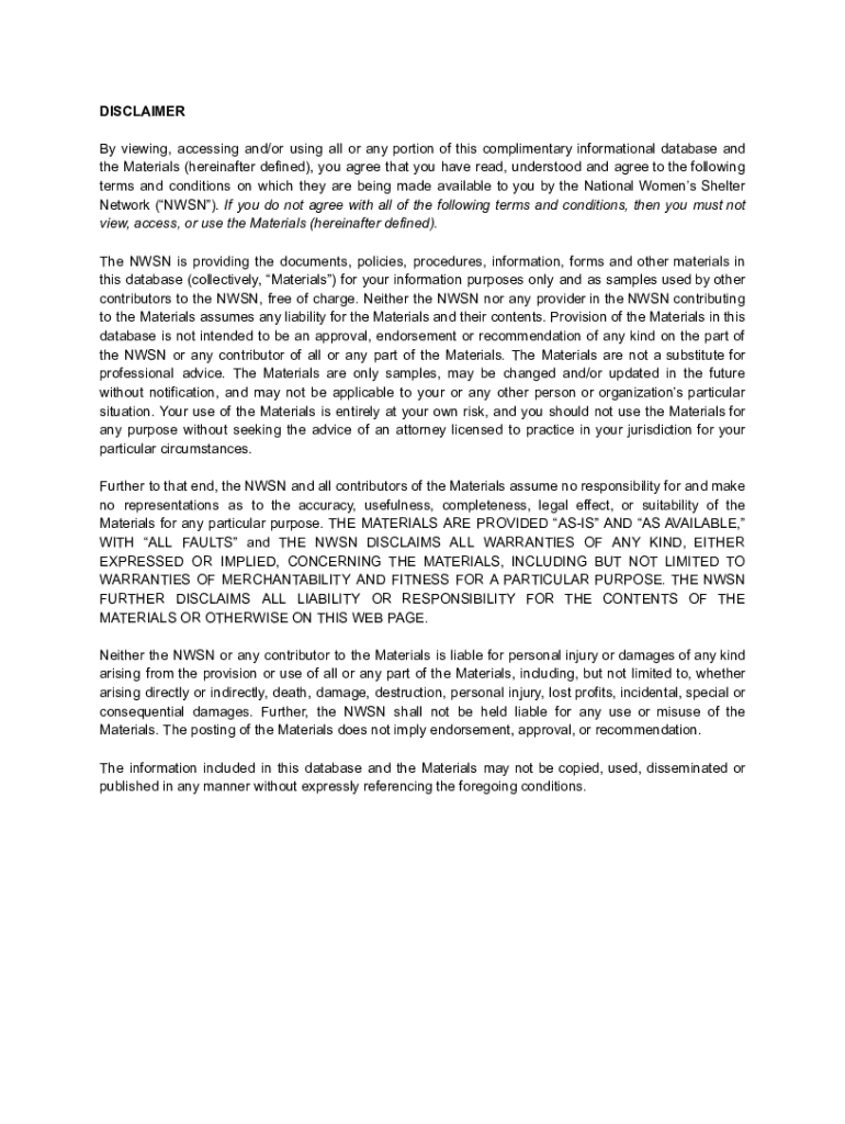 DISCLAIMER By viewing, accessing and/or using all or any portion of this complimentary informational database and the Materials (hereinafter defined), you agree that you have read, understood and