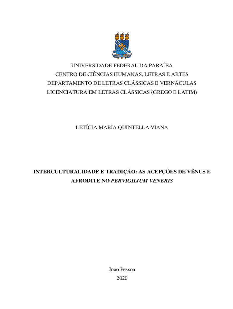 UNIVERSIDADE FEDERAL DA PARABA CENTRO DE CINCIAS HUMANAS, LETRAS E ARTES DEPARTAMENTO DE LETRAS CLSSICAS E VERNCULAS LICENCIATURA EM LETRAS CLSSICAS (GREGO E LATIM)LETCIA MARIA QUINTELLA VIANAINTERCULTURALIDADE