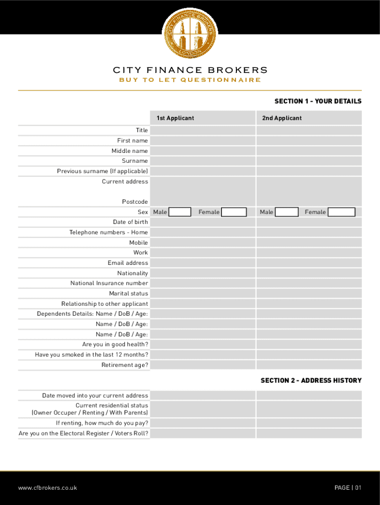 Individuals or entities planning to purchase a property for the purpose of renting it out, commonly known as buy to let investors, are required to file the buy to let questionnaire.