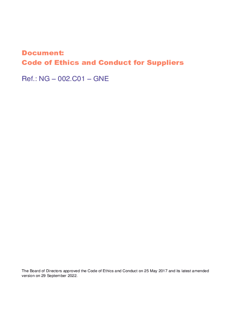 El Código de Ética y Conducta para Proveedores establece los principios que guiarán a los proveedores y colaboradores externos en el comportamiento ético en las relaciones comerciales con cualquier