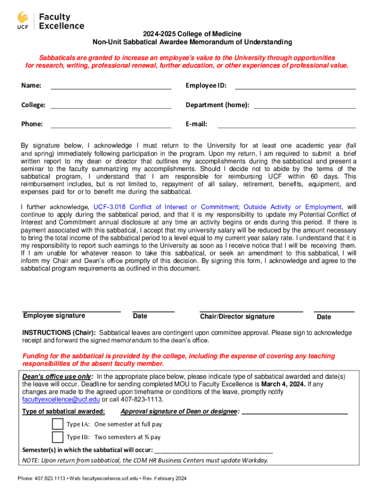 Get the free Non-unit Sabbatical Awardee Memorandum of Understanding - facultyexcellence ucf