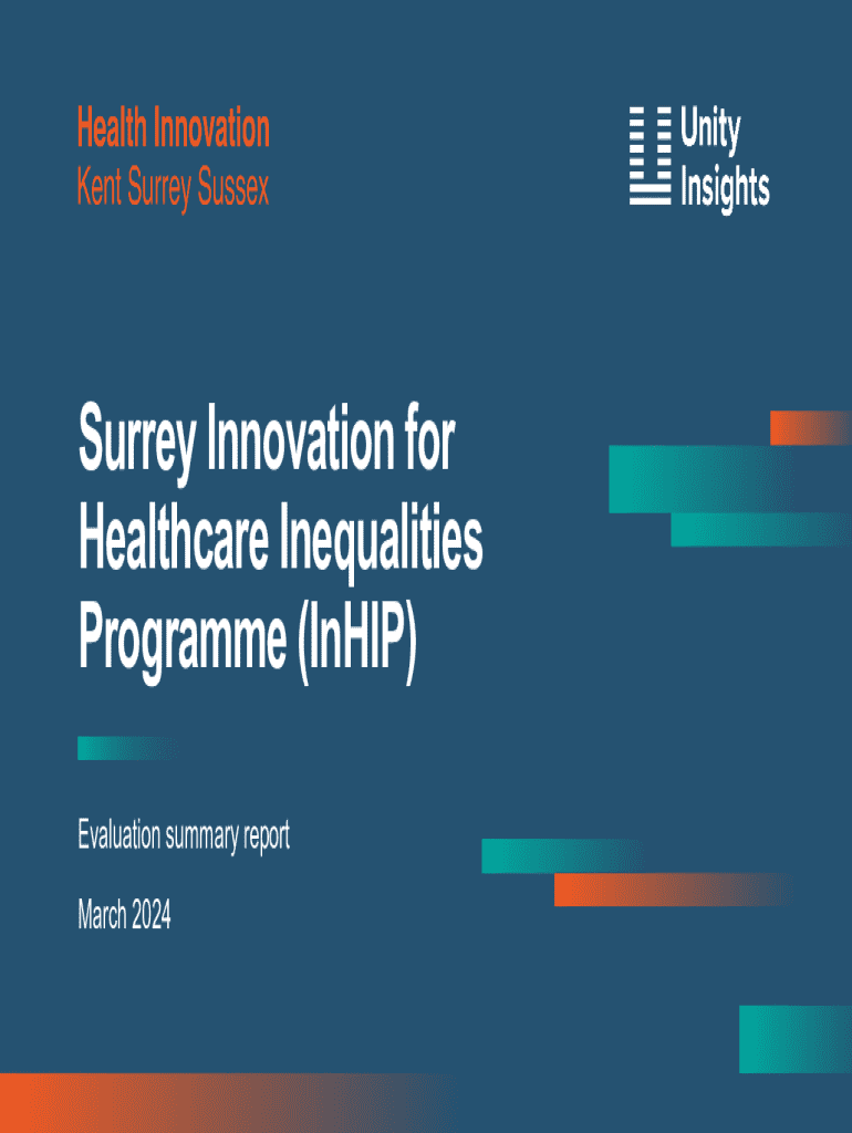 Surrey Innovation for Healthcare Inequalities Programme (InHIP) Evaluation summary report March 2024Contents 1.2.Introduction4.1.Context2.Surrey InHIP programme3.Evaluation questionsMethodology 1.Quantitative