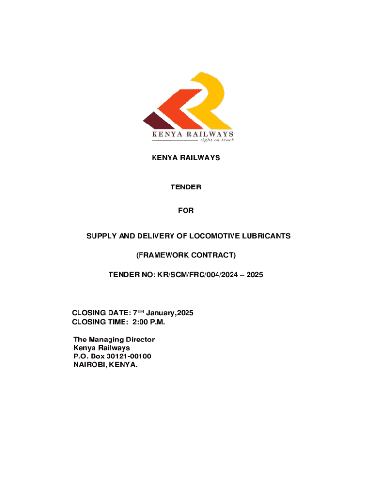 Get the free Kenya Railways Tender for Supply and Delivery of Locomotive Lubricants - krc co