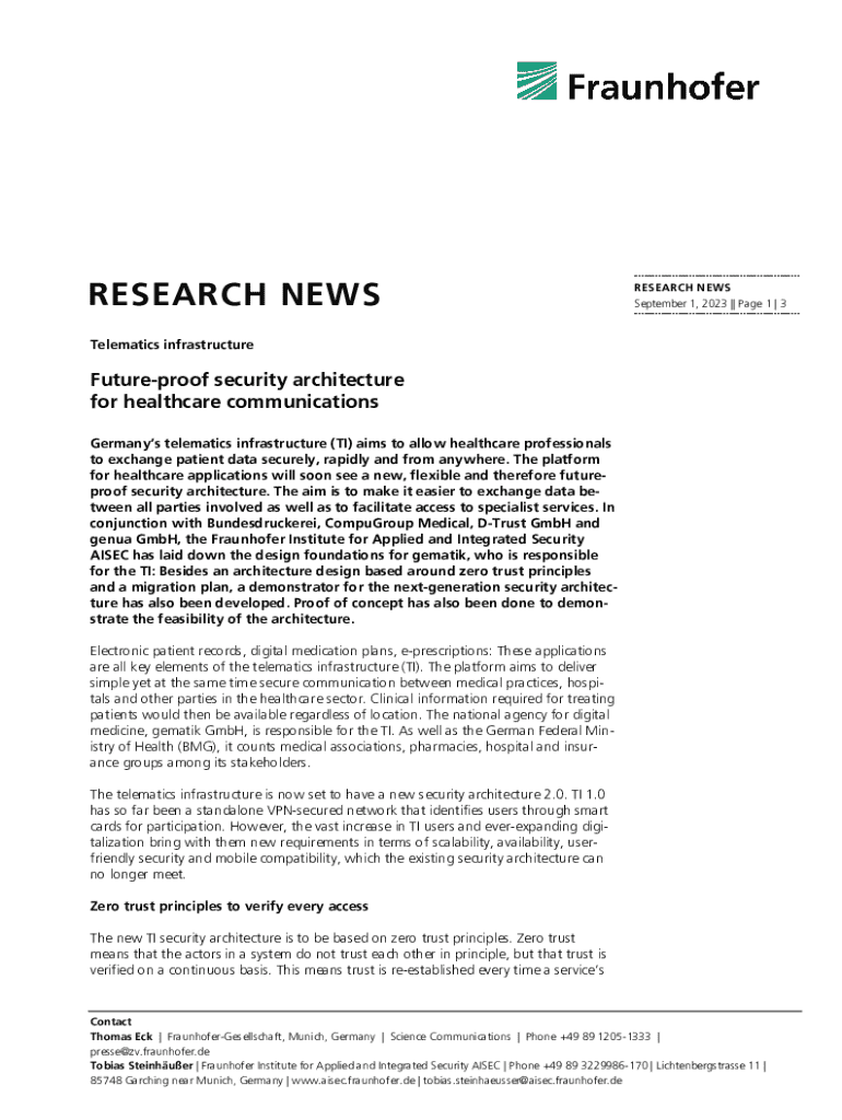 RESEARCH NEWSRESEARCH NEWS September 1, 2023 || Page 1 | 3Telematics infrastructureFutureproof security architecture for healthcare communications Germanys telematics infrastructure (TI) aims to allow