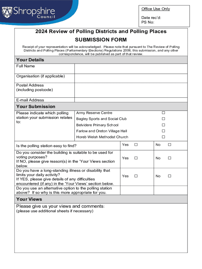Get the free 2024 Review of Polling Districts and Polling Places Submission Form