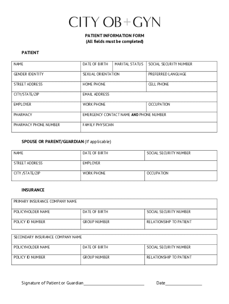 Get the free Patient Information Form