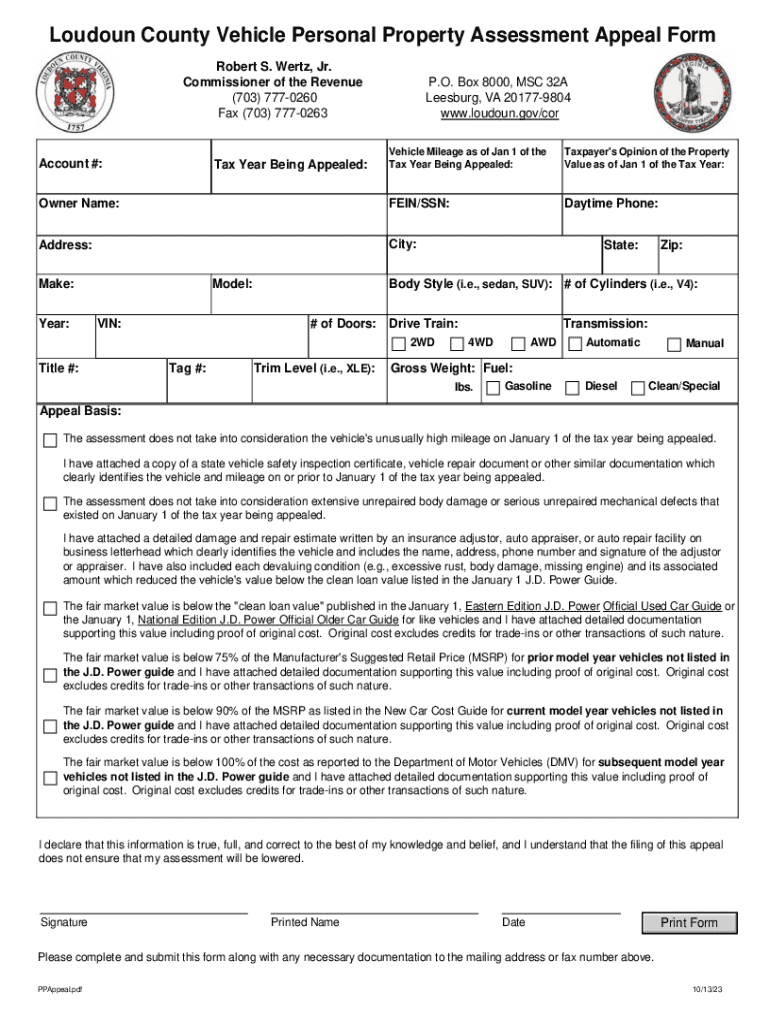Get the free Loudoun County Vehicle Personal Property Assessment Appeal Form