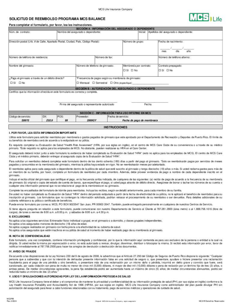 Obtener el gratis Solicitud De Reembolso Programa Mcs Balance