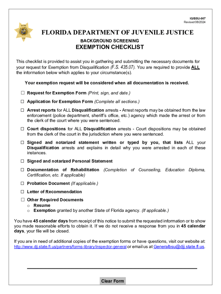Esta lista de verificación se proporciona para ayudarlo a reunir y enviar los documentos necesarios para su solicitud de Exención de Descalificación (F.S. 435.07). Se requiere que proporcione toda