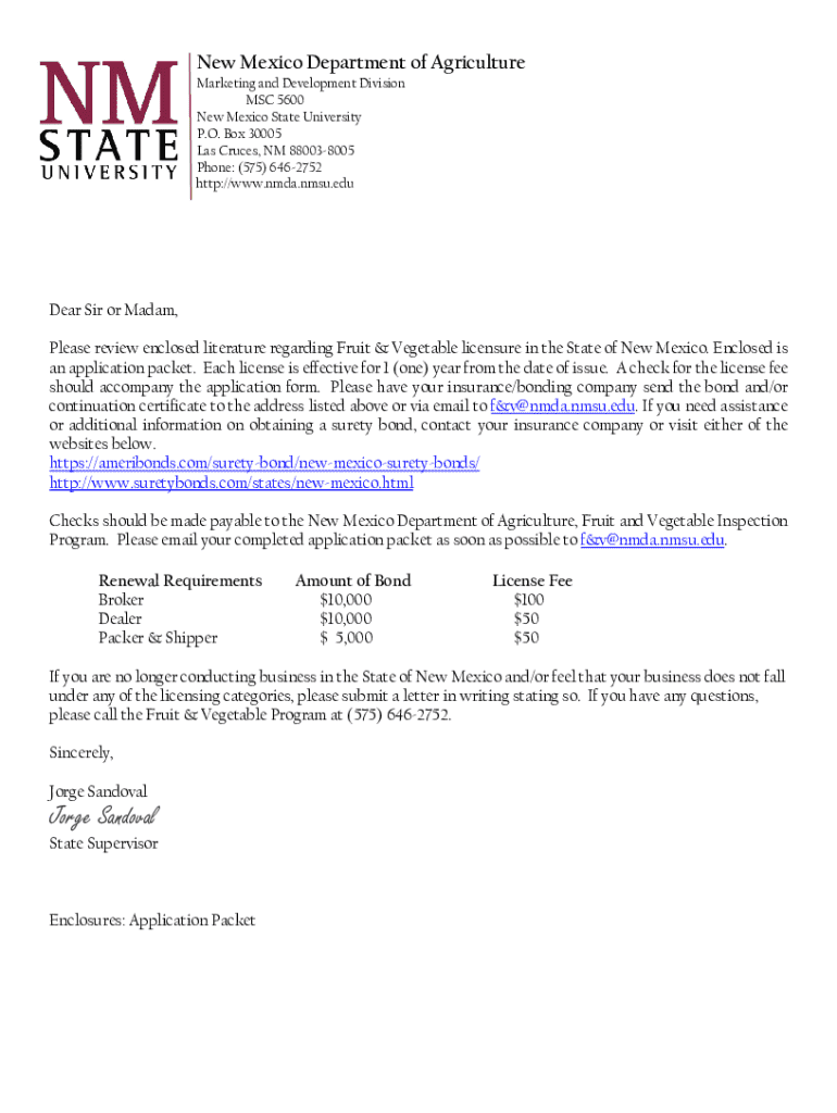 Get the free New Mexico Department of Agriculture Fruit and Vegetable License Application