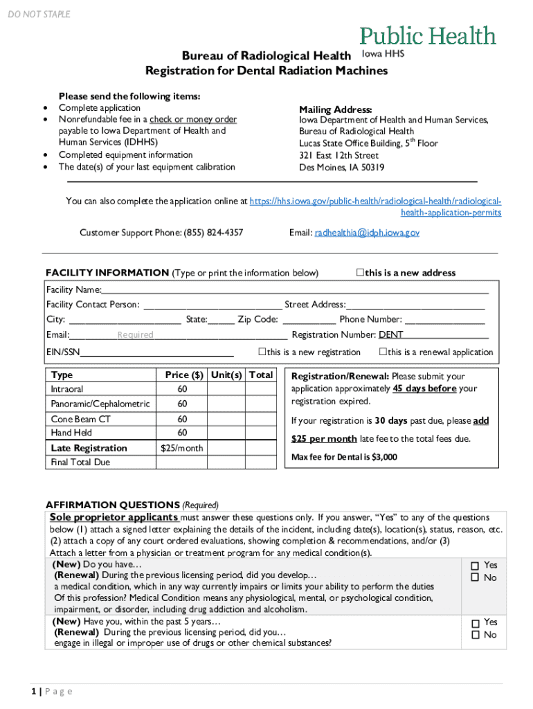 Get the free Registration for Dental Radiation Machines