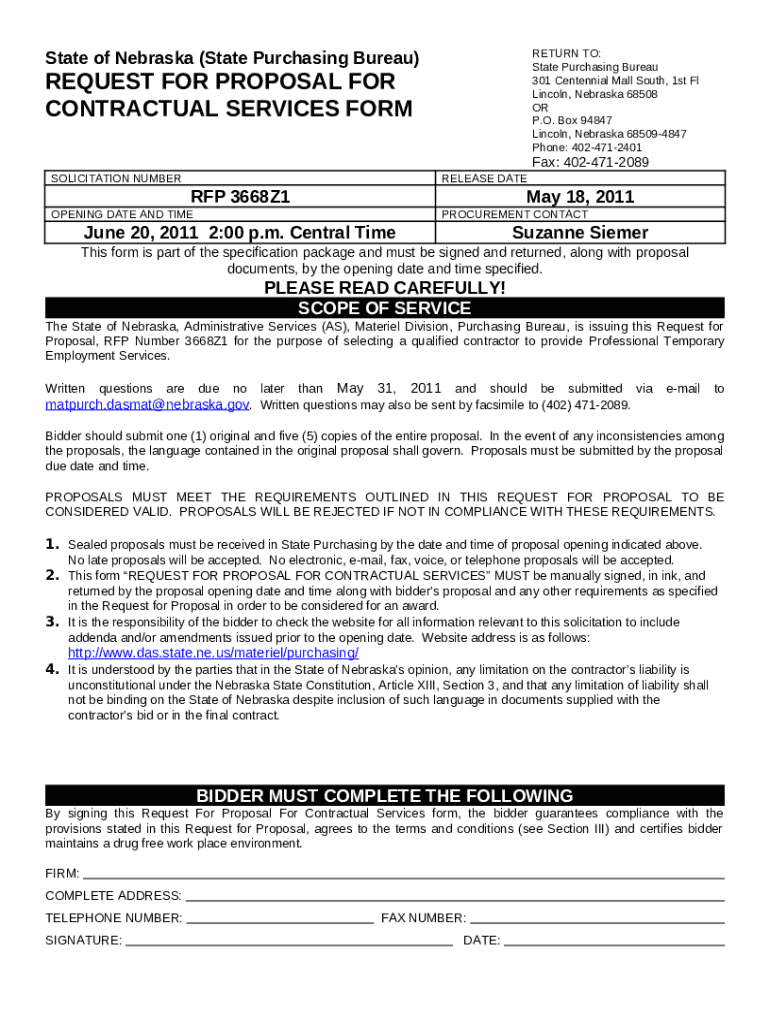 What is Request for Proposal for Contractual Services Form?
