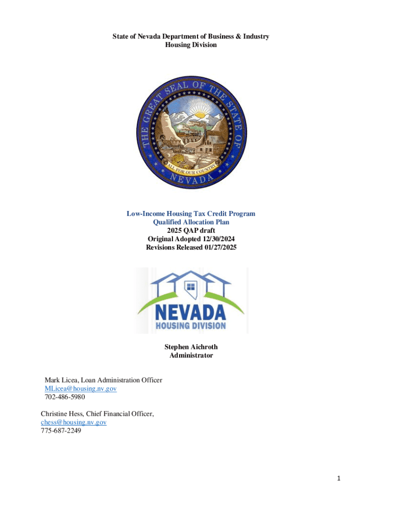 This document outlines the rules, guidelines, and procedures associated with the Low-Income Housing Tax Credit (LIHTC) program in Nevada for the year 2025. It includes details on application processes,