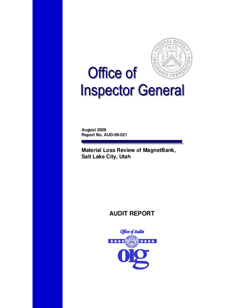 August 2009 Report No. AUD09021Material Loss Review of MagnetBank, Salt Lake City, UtahAUDIT REPORTReport No. AUD09021August 2009Material Loss Review of MagnetBank, Salt Lake City, Utah Federal Deposit