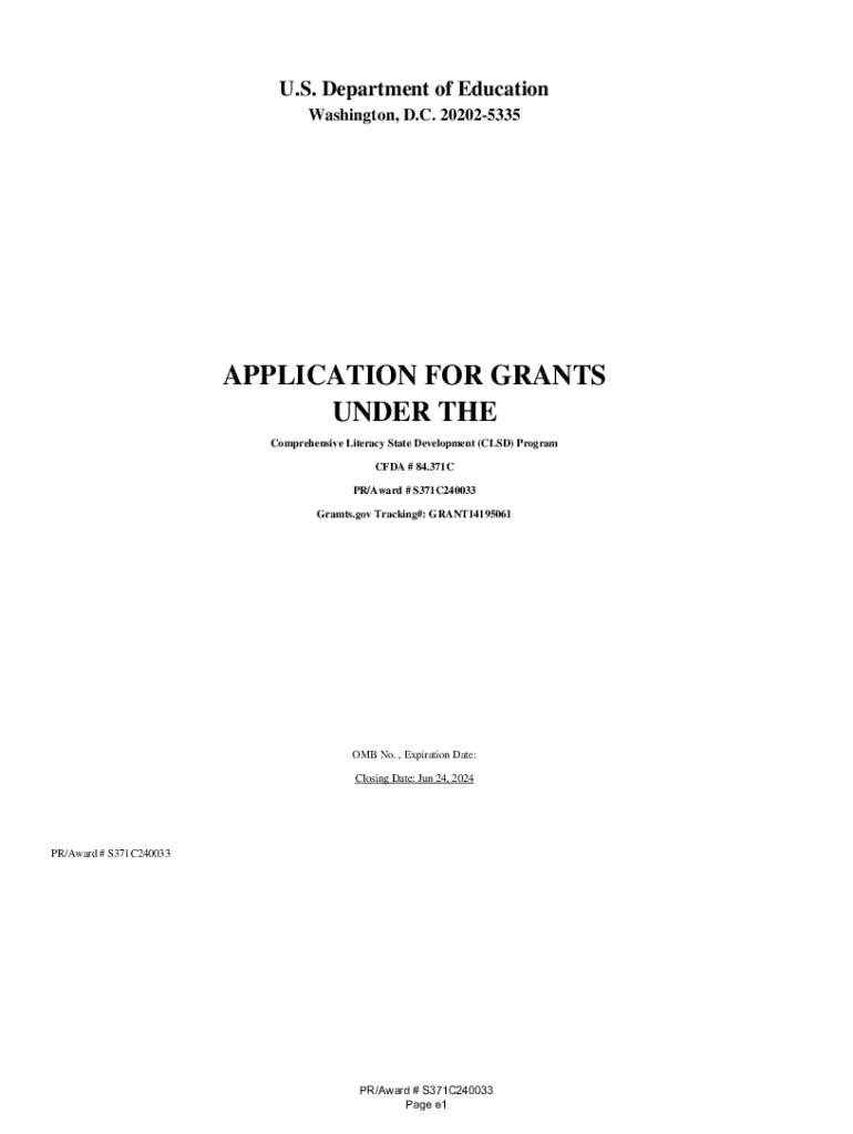 Get the free Application for Grants Under the Comprehensive Literacy State Development (clsd) Pro...