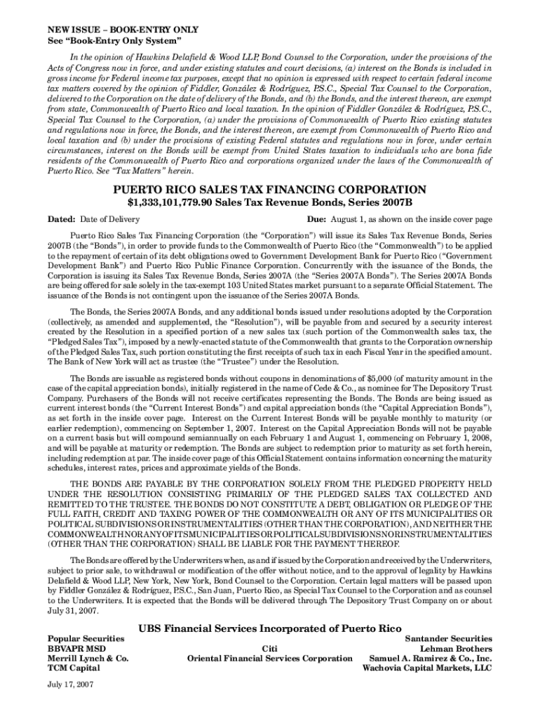 NEW ISSUE BOOKENTRY ONLY See BookEntry Only System In the opinion of Hawkins Delafield & Wood LLP, Bond Counsel to the Corporation, under the provisions of the Acts of Congress now in force, and under