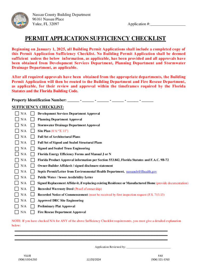 This document outlines the necessary steps and checklist items required for submitting a Building Permit Application in Nassau County, including approvals needed from development and planning departments,