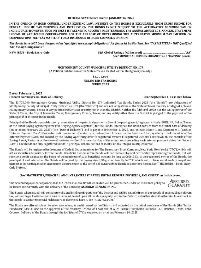 Get the free OFFICIAL STATEMENT DATED JANUARY 16, 2025