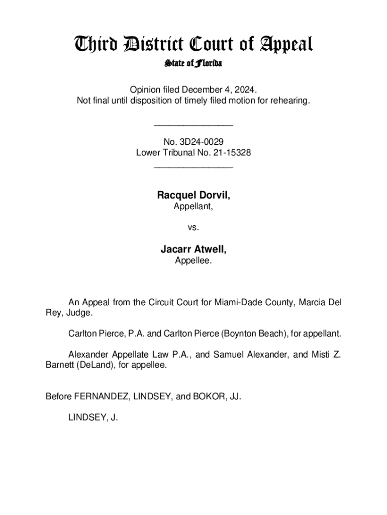 Get the free An Appeal from the Circuit Court for Miami-Dade County, Marcia Del