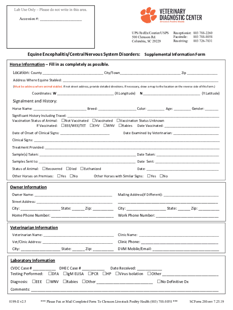Get the free Equine Encephalitis/central Nervous System Disorders: Supplemental Information Form