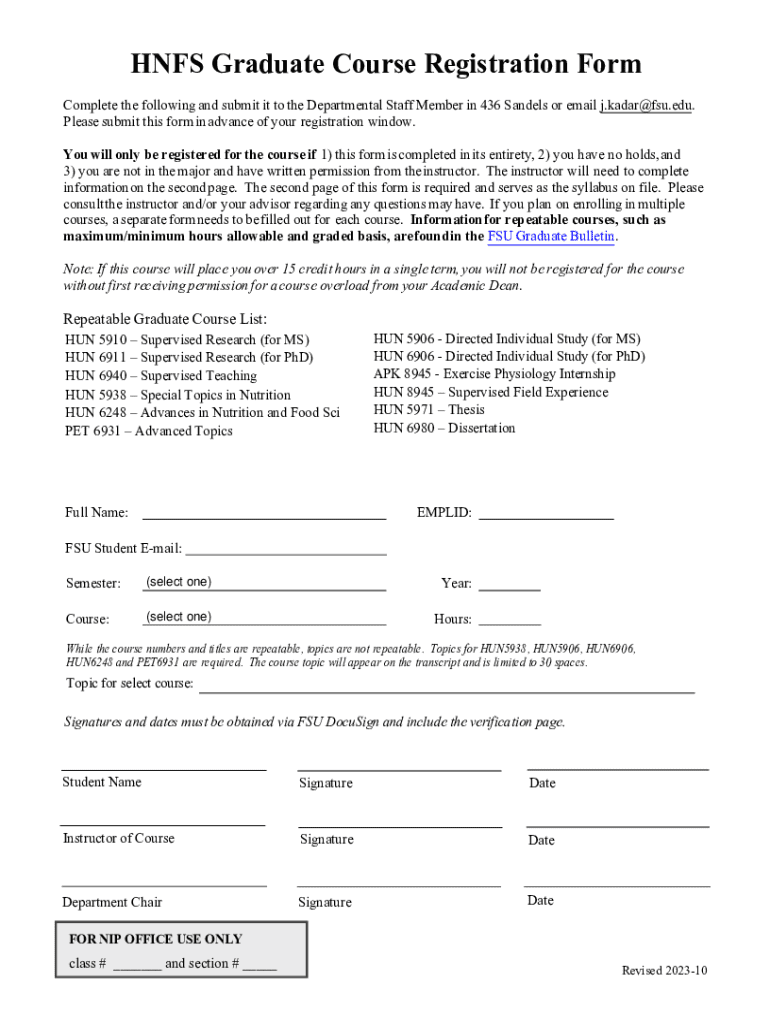 To fill out the HNFS graduate course registration, students typically need to complete a registration form, providing necessary personal information, course selections, and any additional required documentation, either online or in-person at the designated office.
