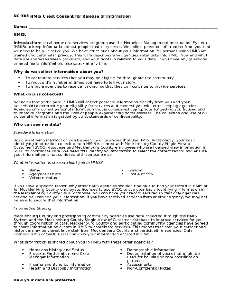 Nc-505 Hmis Client Consent for Release of Ination template instructions