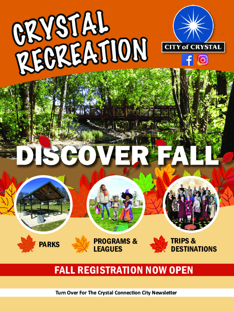 L A T S Y R C N O I T A E R C E RDISCOVER FALL PARKSPROGRAMS & LEAGUESTRIPS & DESTINATIONSFALL REGISTRATION NOW OPEN Turn Over For The Crystal Connecon City NewsleerTurn Over For The Crystal Connecon