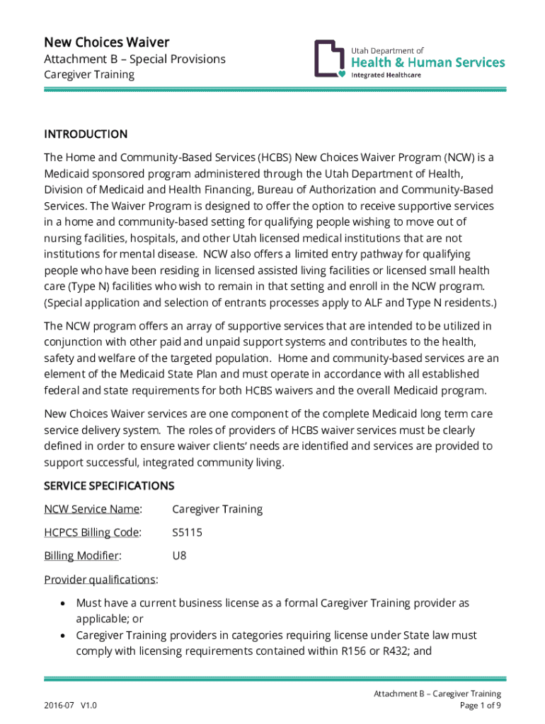 Get the free New Choices Waiver - Caregiver Training