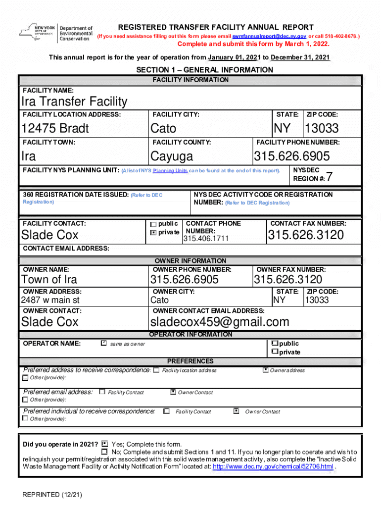 Este informe anual es para el año de operación del 01 de enero de 2021 al 31 de diciembre de 2021. Se requiere completar y enviar este formulario antes del 1 de marzo de 2022.