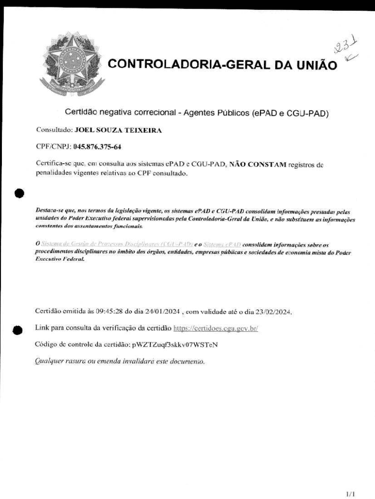 Obtenha o gratuito Certidão Negativa