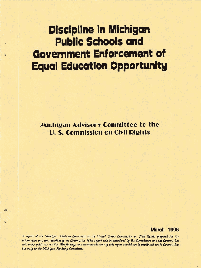 Get the free Discipline in Michigan Public Schools and Government Enforcement of Equal Education ...